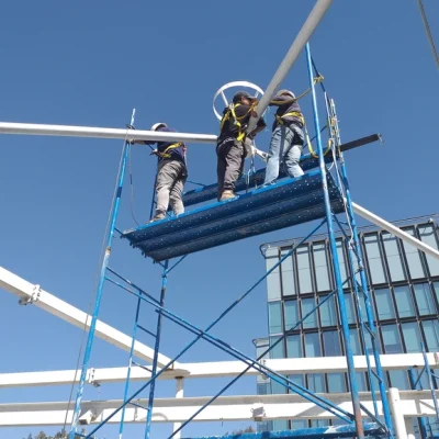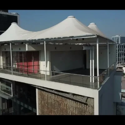 Para el edificio de posgrado de la Universidad Católica de Valparaíso, se encargó cubrir la terraza ubicada en la azotea en un octavo piso, para habilitar su uso durante todo el año. El espacio de trabajo y sus limitantes presentaron múltiples desafíos para el montaje.