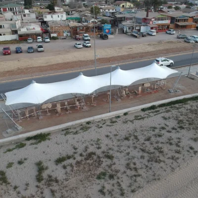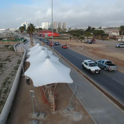Para la primera etapa de remodelación de la costanera de Coquimbo, se ha encargado esta Tensoestructura como cubierta para una zona de ejercicios.