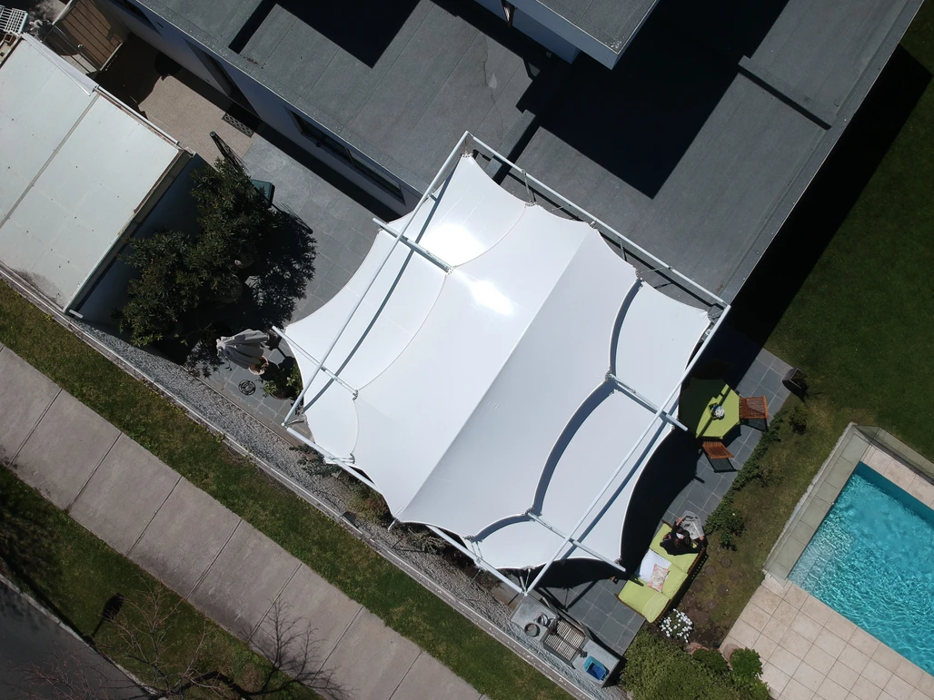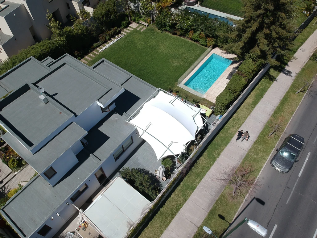 El mandante solicitó una cubierta que permitiera el paso del viento pero que protegiera del sol y lluvias.