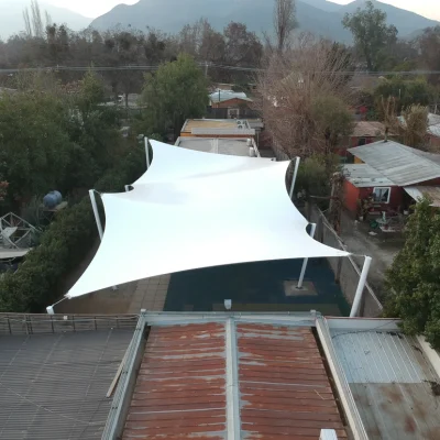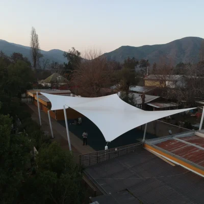 El Colegio Lampa nos encargó la cubierta de uno de los patios principales para proteger a los niños de la radiación solar y las lluvias. La propuesta es una membrana de forma flexible y una estructura limpia.